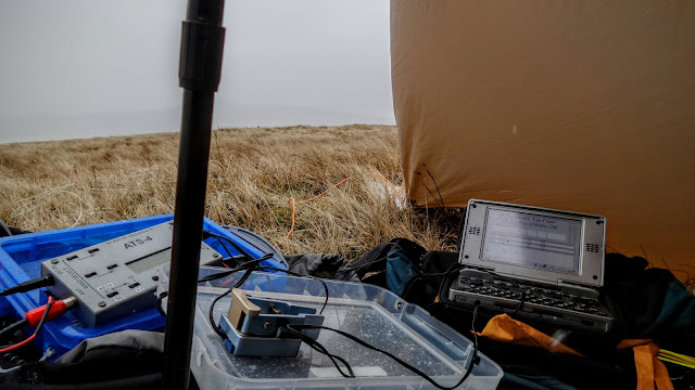 Before packing up, I walked over to see how Allan was getting on. He was well into the swing of things and just finishing off a stint on 60 metres before QSYing to 40m. He was, like me, sheltered behind his little tarp.
