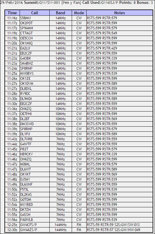 A fantastic day out. A strenuous 8 mile hike in beautiful weather and good radio conditions to boot. They don't come much better than this.