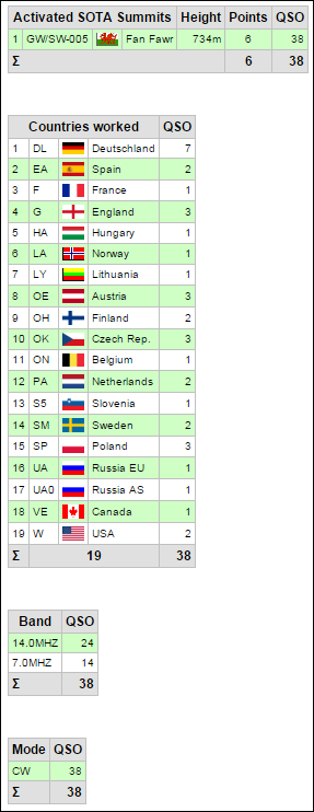 A lovely activation and a pleasure to meet Allan and Val. Check out Allan's Blog for a wealth of SOTA information.
