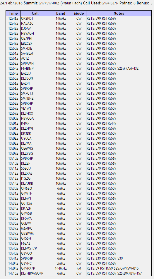 Just like the weather, HF conditions were pretty good too! Nice to grab a few stateside contacts alongside three S2Ss with F6HBI/p on F/AM-432, DL/HB9AGO/p on DM/BW-157 and on 2 metres a quick chat with Allan, GW4VPX/p on the adjacent summit of GW/SW-015 just across the valley.
