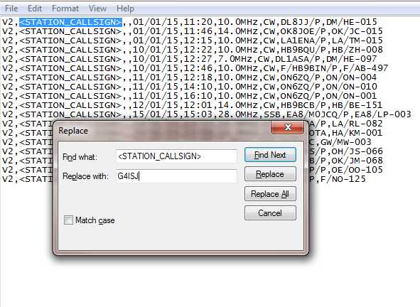 Now using find and replace, change all instances of <STATION_CALLSIGN> with your own Callsign.