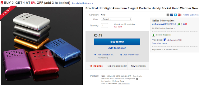 Shopping around on eBay for a replacement element for the Zippo, I came across small Japanese hand warmers, a pair of which is the same price as a single replacement Zippo element.